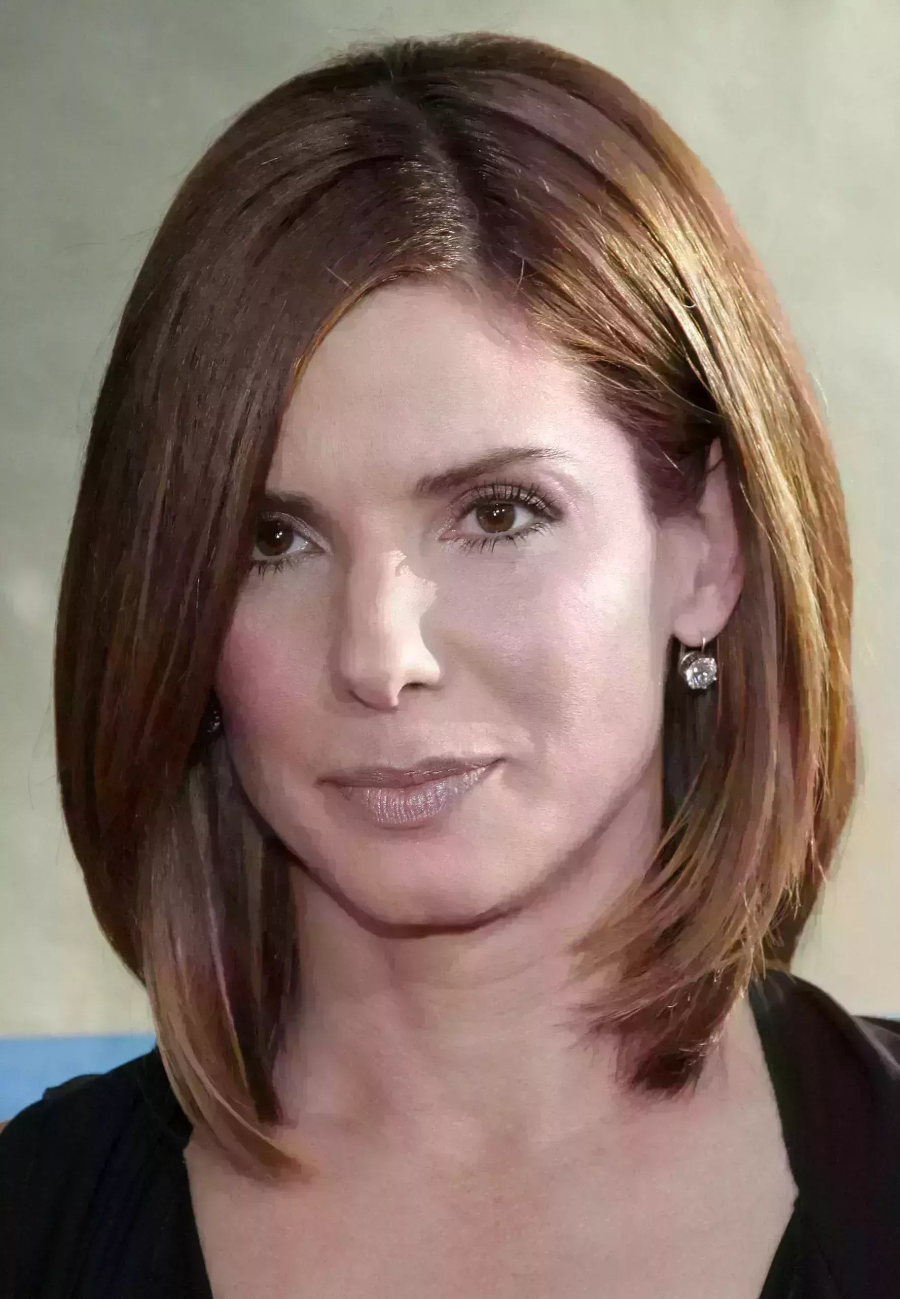 Bob de SandraBullockIncorporemos otro lob a la mezcla porque, ¿por qué no? Las capas en este estilo no son súper obvias pero hay algunas que tienen el propósito de enmarcar los rasgos faciales de Sandra Bullock.