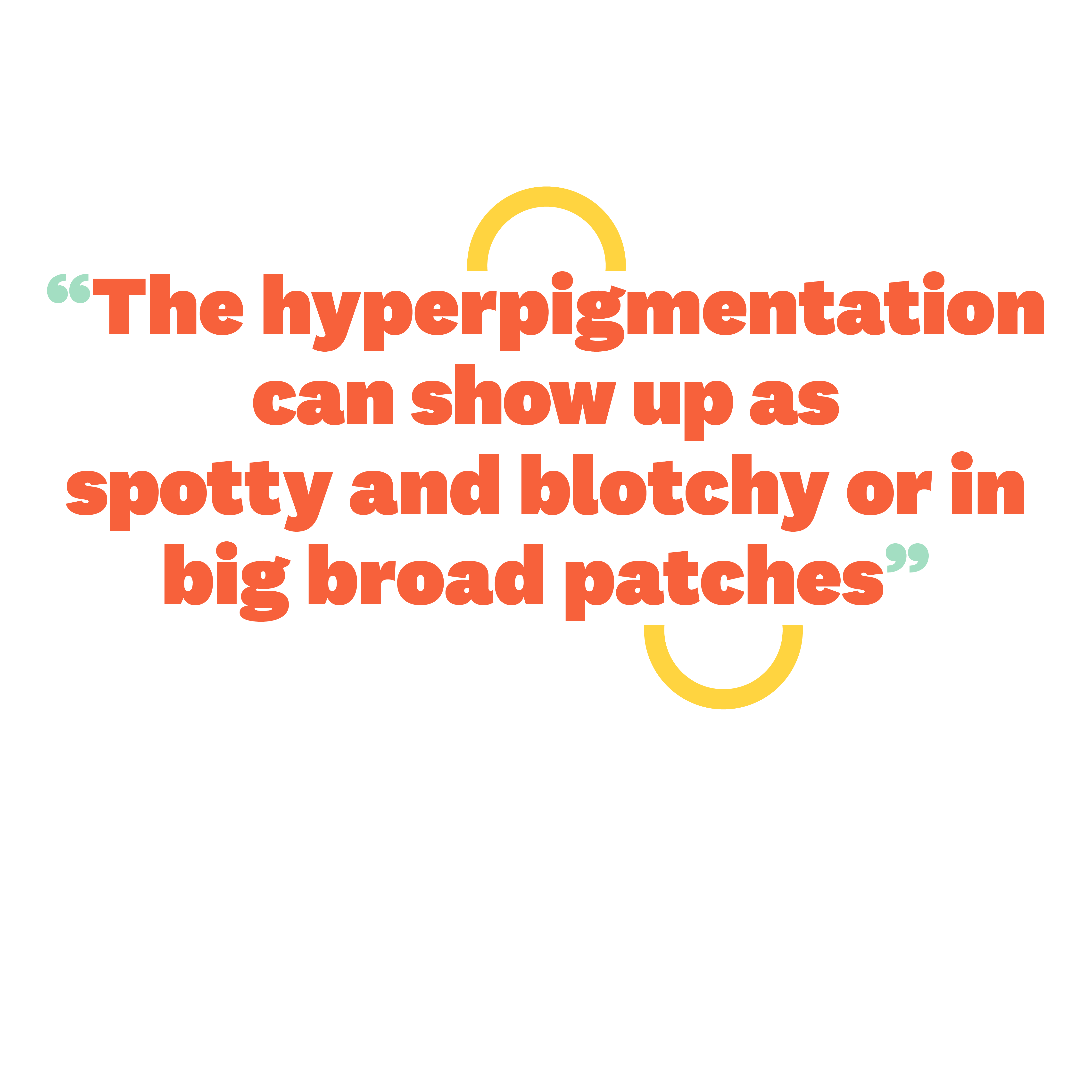 Aunque la hiperpigmentación aparece en todos los tipos de piel de la misma manera -un tono irregular de la piel-, Pierre afirma que las personas de raza negra son más propensas a la hiperpigmentación porque tienen un mayor contenido de melanina de base.
