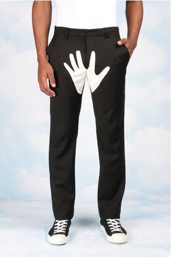 Pantalones con el culo al aire, de 250$, otros con unas manos en la entrepierna (nos recuerdan a esas camisetas bastas con unas manos en la zona de los pechos), una sudadera con un culo (de nuevo) pintado… un desparrame, chica. Vamos, que la colección parece diseñada por un niño en la edad del caca-pedo-culo-pis.