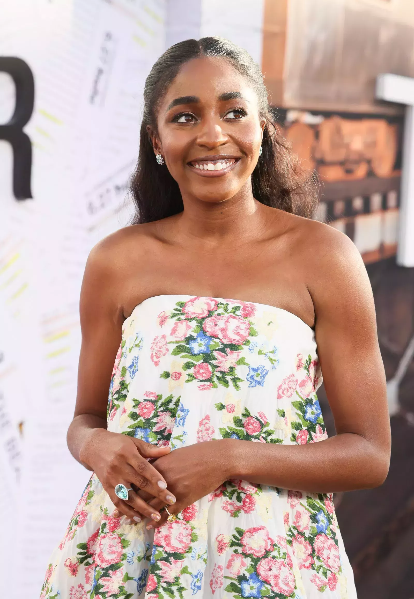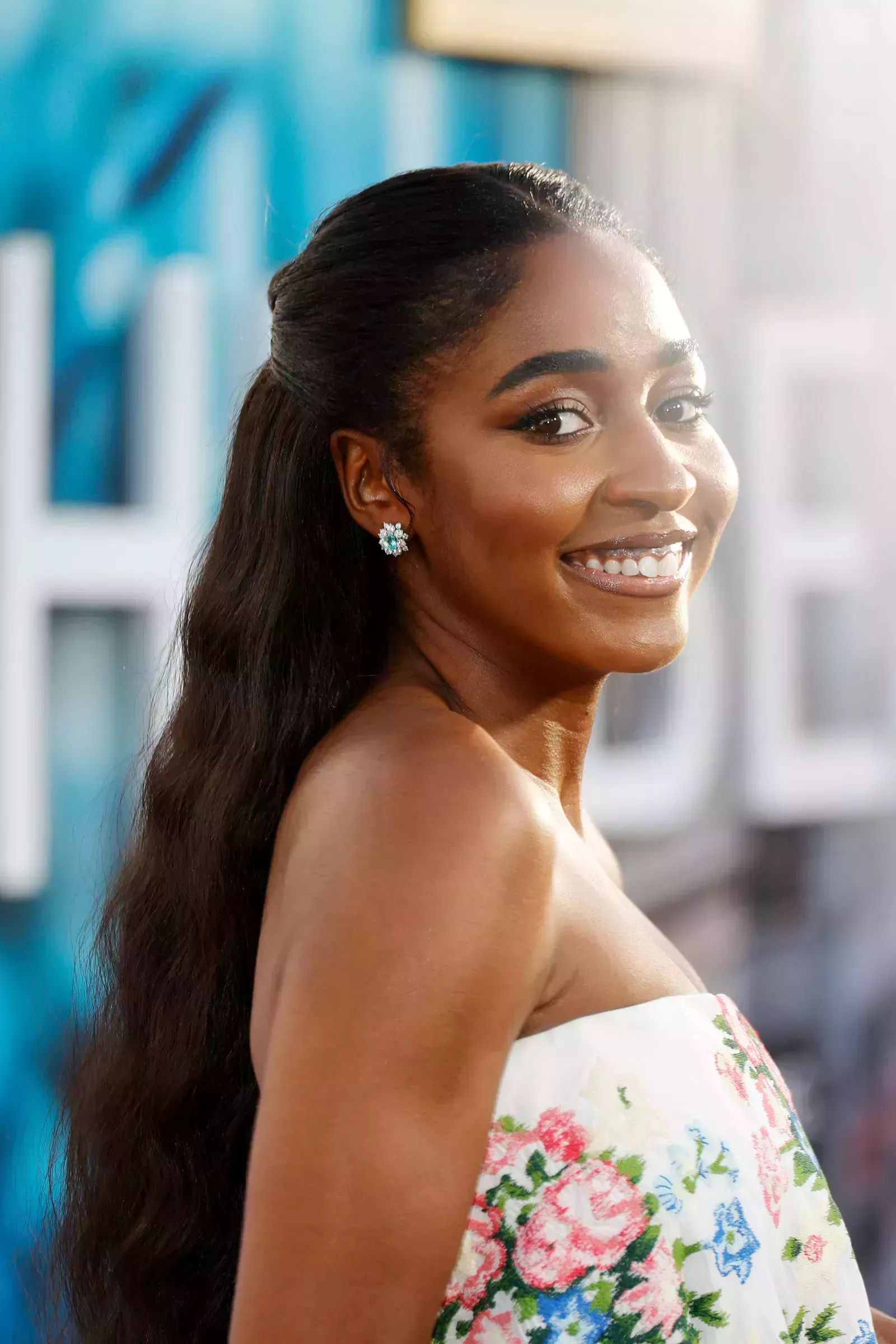 El peluquero Miles Jeffries, que trabaja a menudo con Edebiri, le hizo la raya en medio y recogió la parte superior del cabello hacia atrás, fijándolo en la coronilla y peinando los largos con suaves ondas de sirena que caían por su espalda hasta rozar su vestido floral sin tirantes de Loewe. Un look muy veraniego, especialmente con el maquillaje rosado y luminoso de Ernesto Casillas, que aplicó sombras de color champán y palo de rosa en los párpados de la actriz, iluminador en las mejillas y un toque de gloss para darle más brillo.