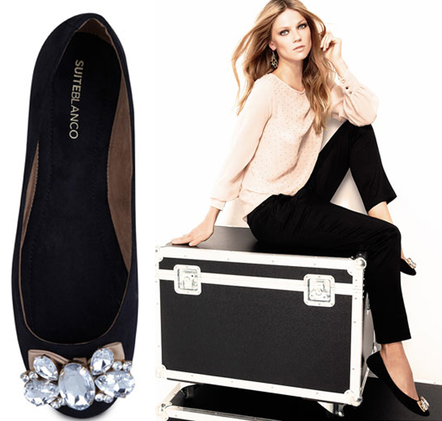 Miu Miu fue una de las firmas pioneras en traer esta tendencia. Sus bailarinas, en charol y con cristales XL en las punteras, son ya un verdadero obejeto de deseo entre las más fashionistas. Yo reconozco que me he pasado toda la vida suspirando por ellas, pero no me las he podido permitir (y creo que tampoco podré hacerlo en un futuro cercano), pero gracias a Dios que existen los clones y que SuiteBlanco esta temporada se ha animado a hacernos una versión buena bonita y barata.