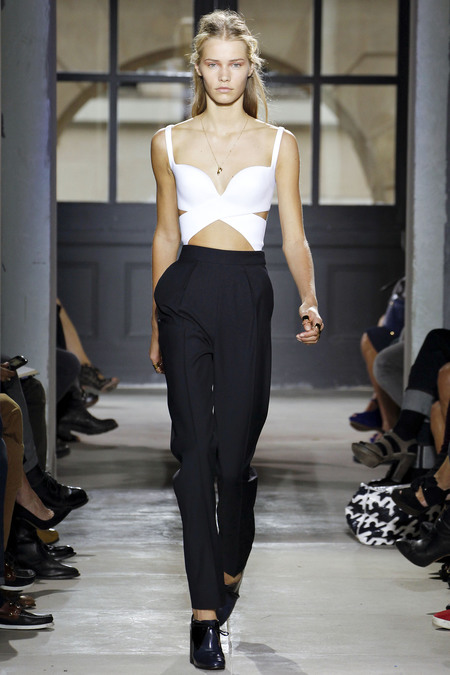 La de primavera es una colección muy alegre, plagada de volantes, pero que, curiosamente, no rompen con el minimalismo habitual al que nos tiene acostumbrados la firma. Mucho blanco y negro, beige y gris perla, son los colores que han impregnado la paleta de esta colección.