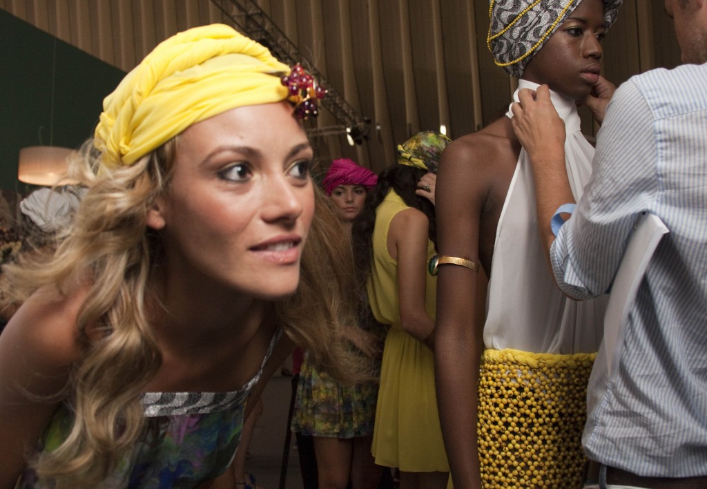Cristina Piña, con su colección inspirada en Copacabana deja la melena al viento con ondas muy leves y maquillaje, de nuevo, muy suave y natural, esta vez poniendo acento en los ojos con eyeliner y sombra de ojos amarilla. Higinio Mateu también apostó por el amarillo como sombra de ojos, sin máscara si quiera, labios naturales y en cuanto al cabello, recogido de forma muy natural también en un moño medio deshecho.