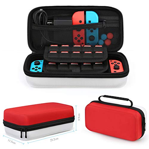- 【Estuche grande de recolección de almacenamiento】- Caja de EVA rígida El estuche de transporte mantiene su dispositivo protegido mientras que el material interior suave mantiene su dispositivo libre de rasguños. Características con 20 tarjetas de juego y un componente de cremallera que se ajusta al agarre cómodo Joy Joy Con Con, adaptador de corriente, cables y otros accesorios más pequeños.