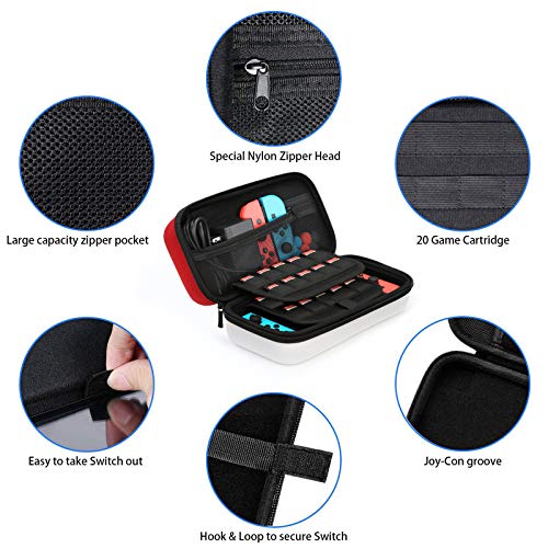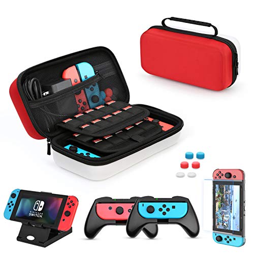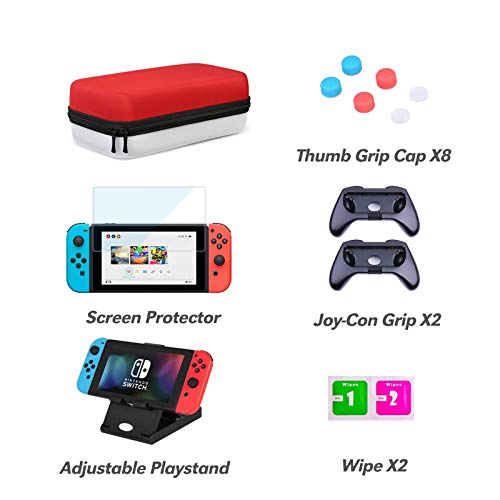 Funda para Nintendo Switch, HEYSTOP 11 en 1 Nintendo Switch Estuche portátil Incluye 2 Joy-Con Grips para Nintendo Switch, PlayStand ajustable, Protector de Pantalla con 6 Tapas de Agarre para Pulgar