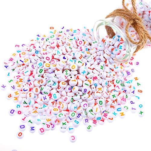 PHOGARY 1280 Piezas Letra y número de Cuentas Redondas, Cuentas Blancas Vistoso Alfabeto Arizona y Número 0-9" Kit Surtido de acrílico para Hacer Joyas
