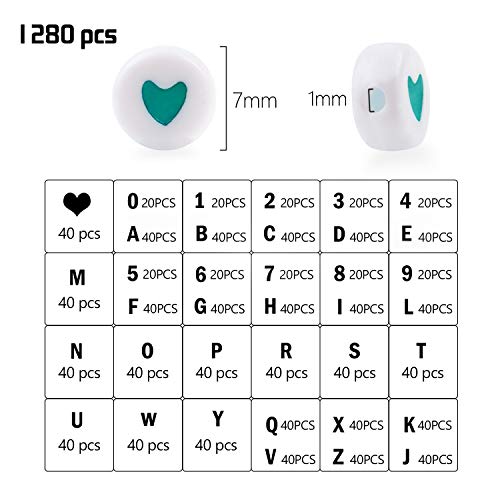 - Value Pack: Obtendrás una caja de cuentas con 26 letras y 10 números y un patrón en forma de corazón. 40 por letras, 20 por números y 40 en forma de corazón. Total 1280 Piezas. A los niños les encantan estos abalorios de abalorios para hacer pulseras de joyería de la amistad como regalos para familiares y amigos.