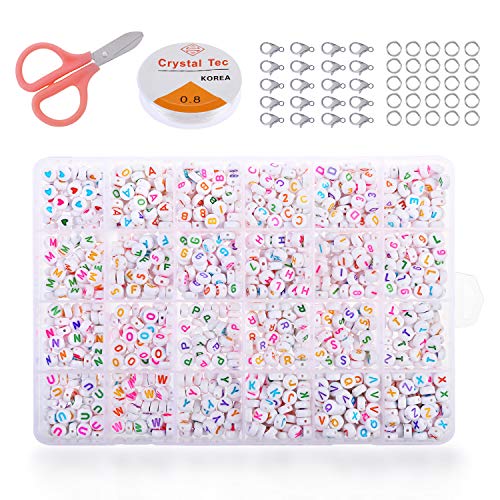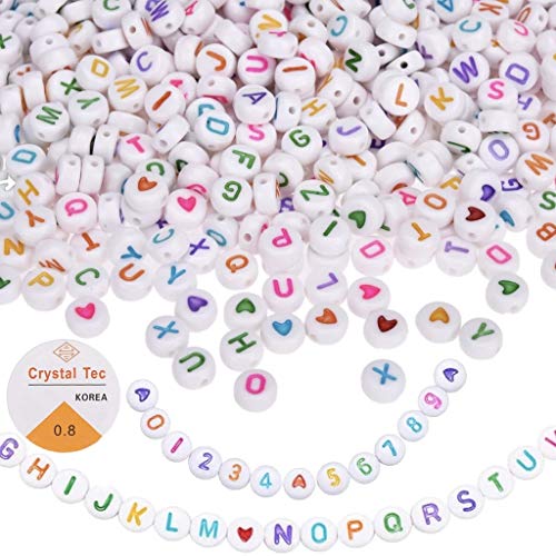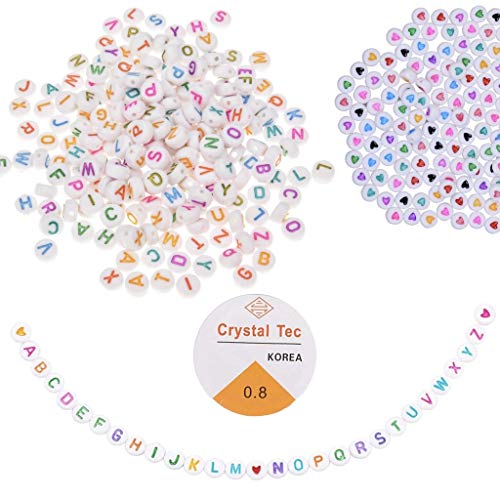 - ? Alta calidad: hecho de material acrílico. Duradero y no fácil de romper. ¡Hay 1200 de cada letra, más 300 cuentas de corazón de amor! Viene con cuerda de cristal. ¡Este conjunto es perfecto para todas sus necesidades de fabricación de joyas!