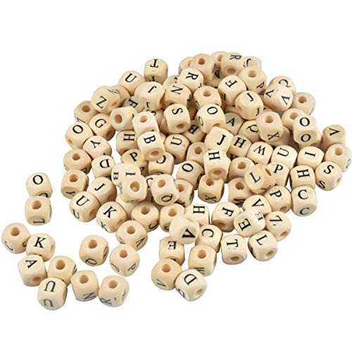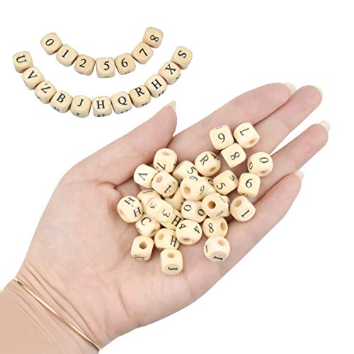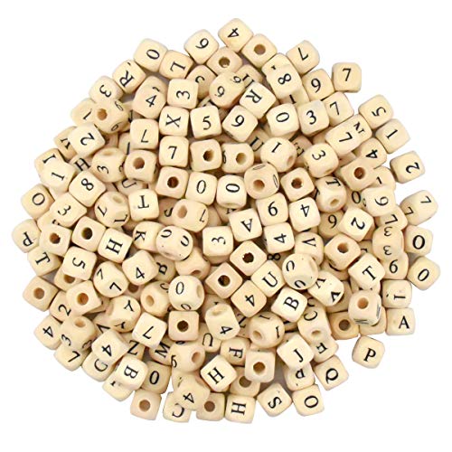 200 Pcs Cuentas Alfabeto de Madera Natural, Cuentas de Número de Madera, Abalorios Letras Grano de la Carta de Madera para la Fabricación de la Joyería, Pulseras DIY Manualidades, 10 mm
