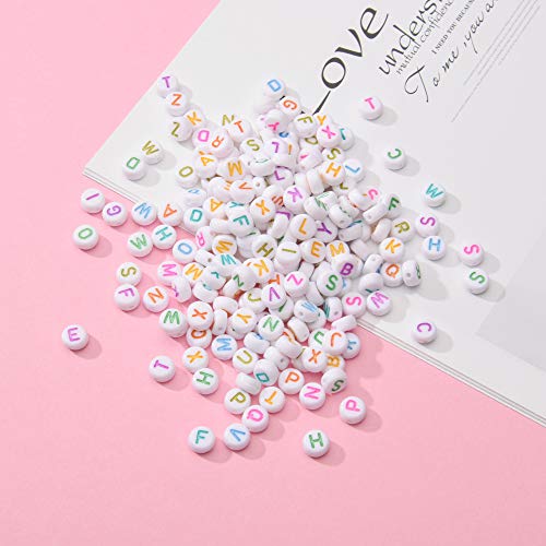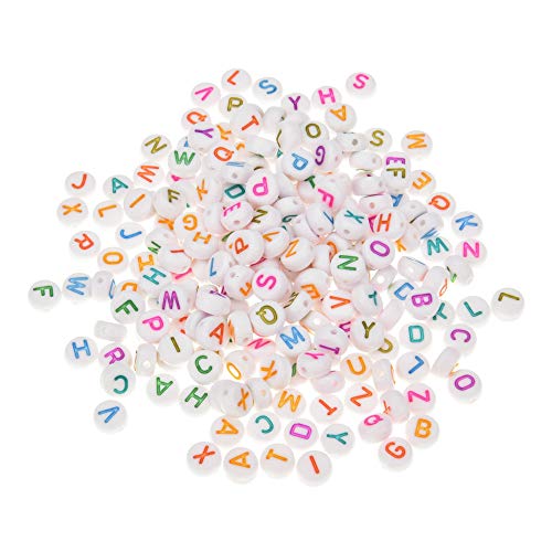 - Cada cuentas está hecha de acrílico. Las cuentas con una superficie lisa y un aspecto exquisito son una buena opción para hacer artesanías. Diámetro-7 mm / 0,27 pulgadas, grosor-4 mm / 0,16 pulgadas, apertura-1,2 mm / 0,05 pulgadas; Color: Abalorios - Blanco, Letra - Colorido.