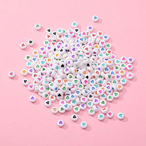 KAIMIRUI 1200 Piezas Cuentas del Alfabeto MulticolorMezclado Redondo Acrílico Cuentas de Letras Redonda de Corazón de Amor,Con Cuerda de Cristal para Pulseras DIY Manualidades (2-colors)