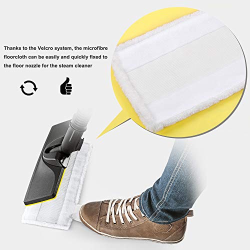- Easy Fit: el suelo de microfibra para el limpiador a vapor se puede fijar fácilmente y rápidamente a la boquilla de mano gracias al cierre de velcro.