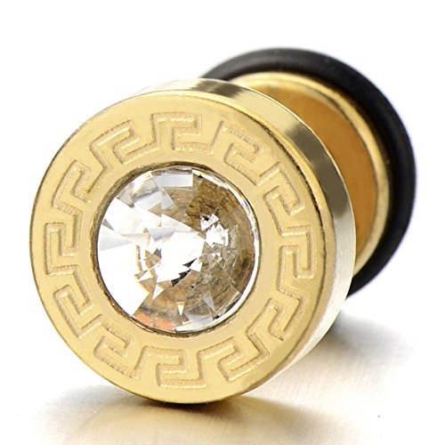 10MM Modelo Dominante Griego Oro Pendientes de Hombre, Aretes, Acero Inoxidable, con 4MM Circonita, 2 piezas