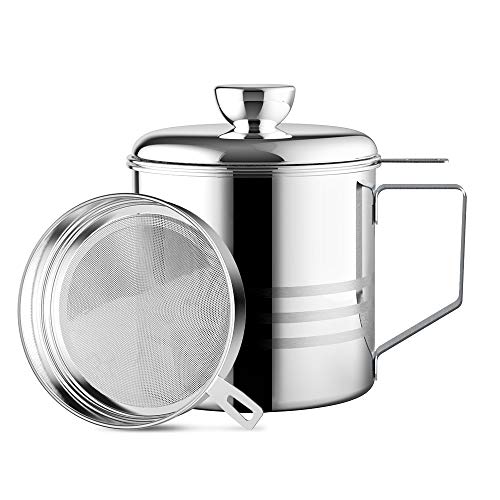 Chihee Filtro de Aceite, Recipiente de Grasa en Lata, 1,2 L Acero Inoxidable. Recipiente o pote de Lata con Filtro de Malla Fina, Adecuado para almacenar Aceite de fritura y Grasa de Cocina