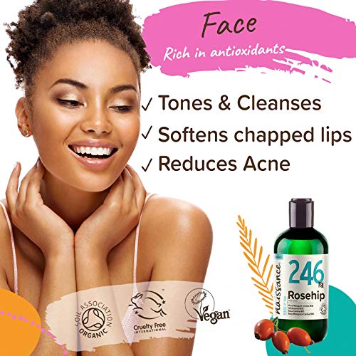 Naissance Aceite Vegetal de Rosa Mosqueta Canina BIO n. Âș 246 â 250ml - Puro, natural, vegano, certificado ecolĂłgico, sin hexano y no OGM - Hidrata y nutre todo tipo de pieles, el cabello y las uñas.