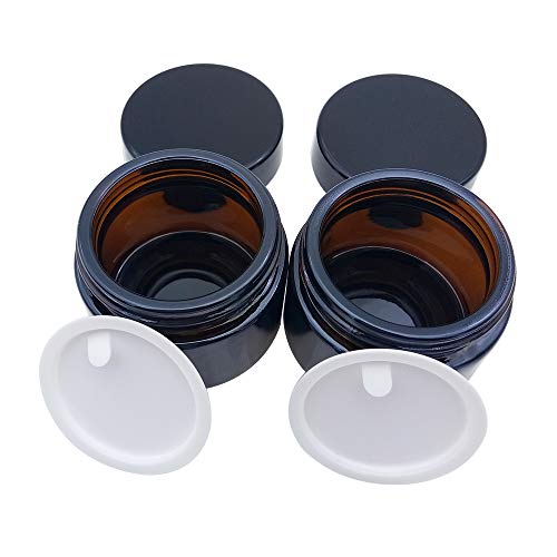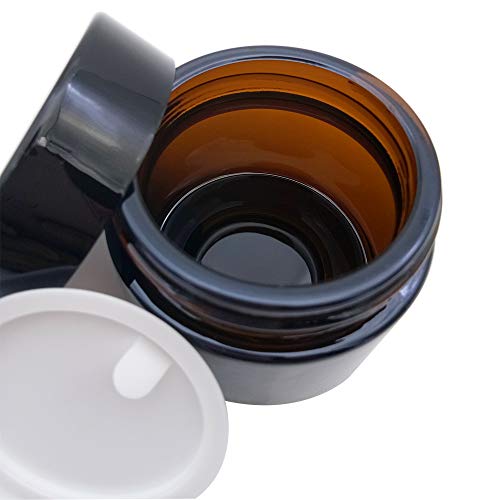 KingYH 2 Pieza 50ml Tarros de Cristal de Ámbar con Tapa Interior Vacía Crema Rellenables Botella de Pot Recipiente para Salve Crema Facial Loción Aromaterapia Mezclas Biberó Marrón