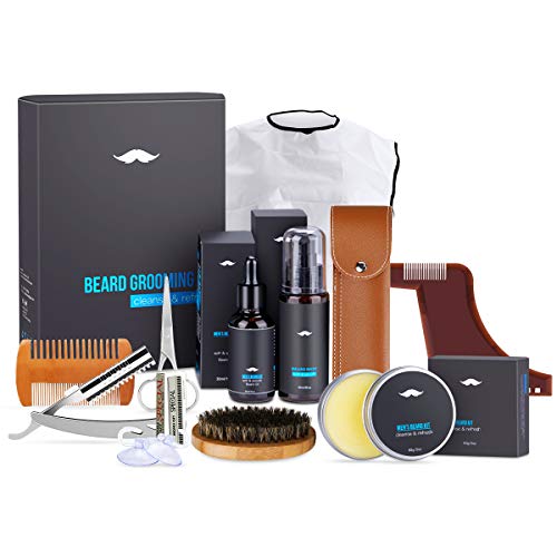 Kit Cuidado Barba, Magicfun 10 Kit Barba Cuidado Natural con Champu Barba Peine Barba Cepillo Barba Aceite Barba Balsamo Barba Barba Tijeras, Mejor Regalo Perfecto Originales para Hombre