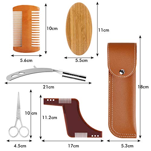 Kit Barba Cuidado Para Hombres, Set Herramientas de Aseo y Recorte Con Champú Barba, Aceite Crecimiento Barba, Bálsamo, Cepillo, Peine, Tijeras, Guía Barba, Mejores Regalos para Lui e PaPa