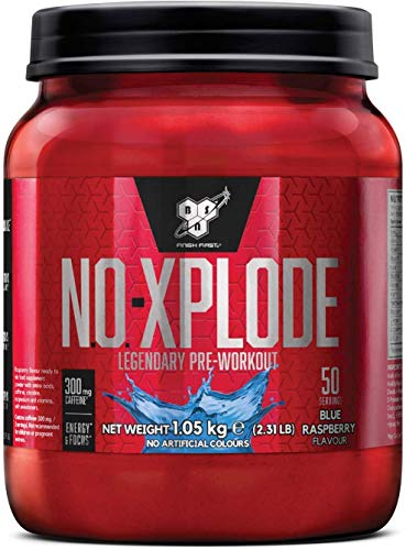 BSN Nutrition N.O.-Xplode, Suplementos Deportivos Pre Workout en Polvo con Creatina Monohidrato, Cafeina, Beta Alanina, Vitamina D y Vitamina B Complex, Frambuesa Azul, 50 Porciones, 1.05kg