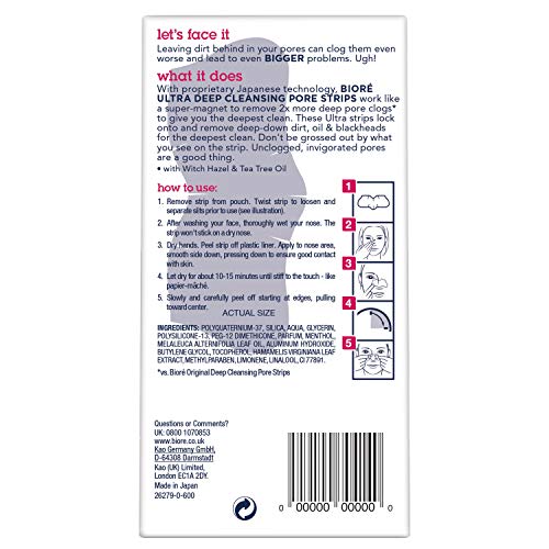 Biore Limpieza profunda de poros tiras 6 Nariz ULTRA tiras Tea Tree Oil & hamamelis