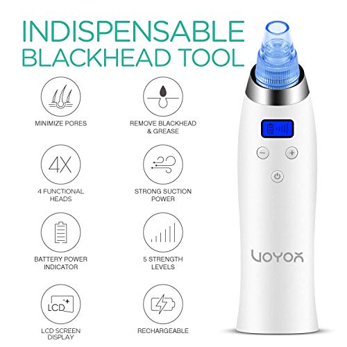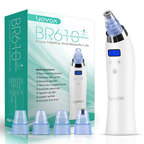 VOYOR 4-In-1 Limpiador de Poros Electrico Extractor Puntos Negros Kit Eliminador Puntos Negros Nariz Succionador de Punto Negro Quita Espinillas y Puntos Negros y Acné Cabezal de Reemplazo LCD BR610