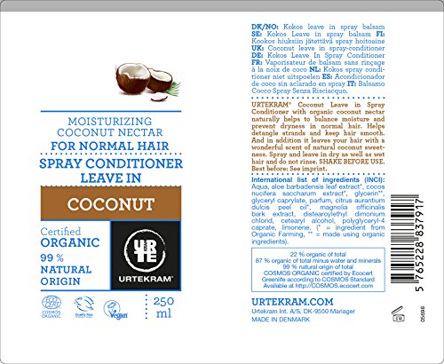 Urtekram Acondicionador de Coco en spray BIO, sin aclarado, 250 ml