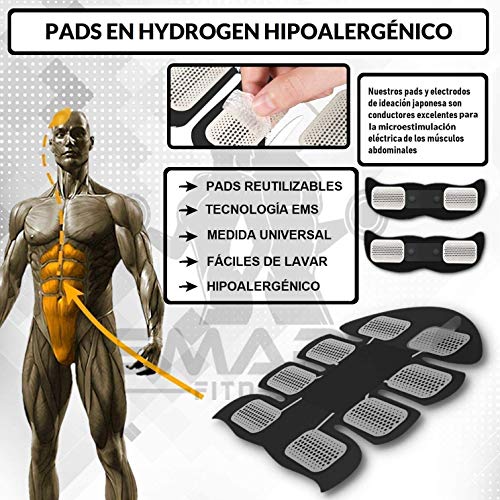 - ?【LO QUE TE PODRÁ EN CASA】Nuestro electroestimulador está certificado por CE y RoHS. Dentro de la caja encontrará 1 manual de instrucciones + 3 almohadillas (la principal para los abdominales y las otras 2 para brazos / piernas / pectorales, etc.) + 3 dispositivos para conectar a las almohadillas para su operación + 8 almhodillas de repuesto.