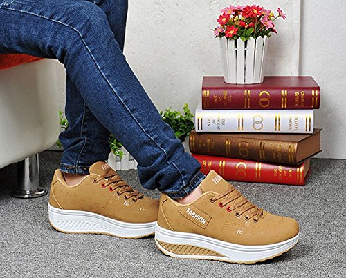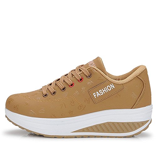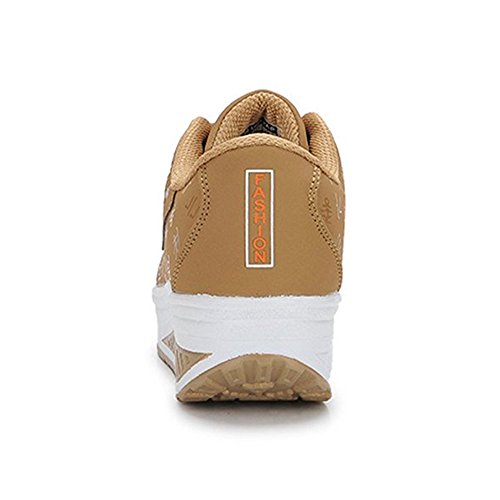 Cuña Plataforma Aptitud Zapatos Mujer Zapatillas de Deporte Casual Correr Sneaker,Caqui,EU36=CN37