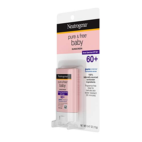 Protector solar mineral para bebé Neutrogena Pure & Free con amplio espectro SPF 60 y óxido de zinc, resistente al agua, hipoalergénico, sin aceite y sin PABA, 0,47 onzas