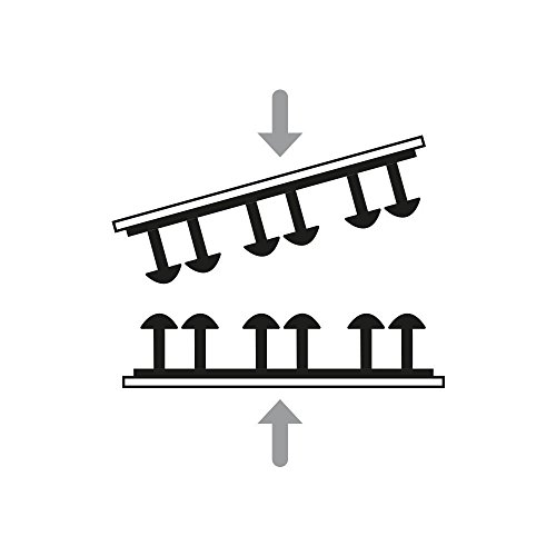 - Un lado; Espuma adhesiva acrílica con película protectora, sensible a la presión y muy resistente. Se pega bien a distintos materiales de alta y media energía superficial, incluidos algunos plásticos, metal, vidrio y superficies pintadas. El otro lado; sistema de cierre negro con filamentos en forma de setas.