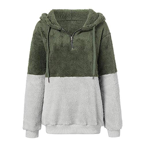 Abrigo De Invierno Mujer Libre Abrigos para Mujer Rebajas Talla Grande Abrigo con Capucha De Manga Larga Vintage Cremallera Señoras Abrigos con Bolsillos Gruesos De Lana riou (1-Green, XL)
