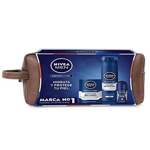 Nivea Men Protege y Cuida Neceser, Set de Baño con Espuma Protectora de Afeitar (1 x 200 ml), Bálsamo After Shave (1 x 100 ml) y Desodorante Roll on (1 x 50 ml)