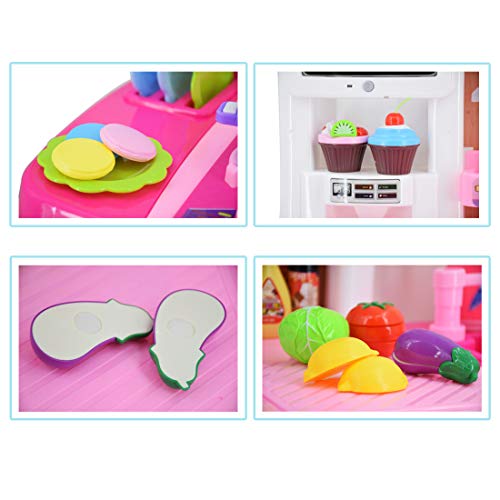 deAO Cocinita Mi Pequeño Chef con Características de Sonidos, Luces y Agua Cocina de Juguete para Principiantes Incluye Accesorios (Rosa)