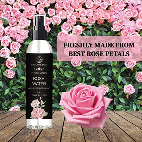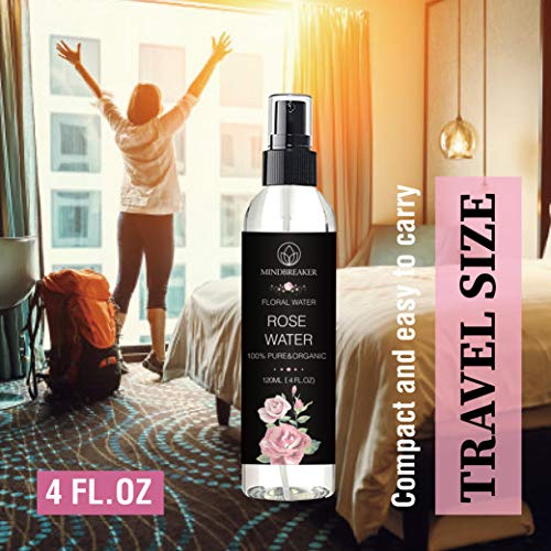 Agua de rosas orgánica: grado terapéutico, puro, búlgaro, sin hexano, sin alcohol: lo mejor para tóner facial, piel, cabello, cuidado del cuerpo, spray de viaje: rociador de niebla fina (120 ml)