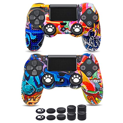6amLifestyle Funda Protectora Antideslizante de Silicona para Mando PS4, Carcasa para Sony PS4 / PS4 Pro / PS4 Slim Controller (Pintada 2 Fundas de Mando PS4 10 Thumb Grips PS4)