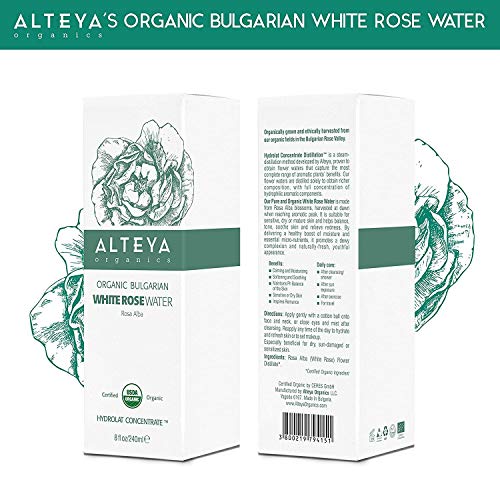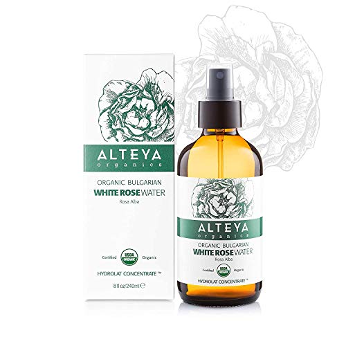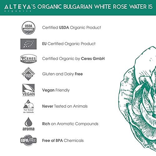 Alteya - Botella de agua de rosa blanca orgånica de 120 ml - 100% USDA certificado orgånico auténtico natural rosa Alba flor agua destilada y vendida directamente por el Rose Grower Alteya Organics