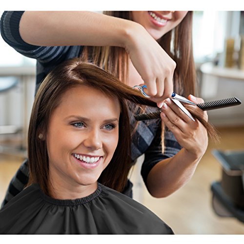 - ✄ COLLAR ALEATORIO DE CAPA DE SALÓN NEGRO: Tenemos dos tipos de escote de capas de peluquero negro, enviado al azar, puede obtener un escote con cierre de cinta mágica o un cuello elástico con cierre de diseño de hebilla de metal, ambos cierres son ajustables para adaptarse a diferentes tamaños de cuello.