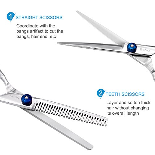 Frcolor Tijeras Peluquería Profesional, Acero Inoxidable Barbero Tijeras de Peluquería Tijera de Corte de Pelo Tijeras De Pelo Salón con Peine impermeable peluquería Capa para Hombres y Mujeres