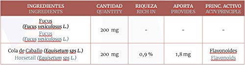 - Cola de caballo (tallos) (Equisetum arvense L) y Fucus (talo) (Fucus vesiculosus).