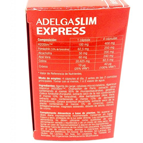 Forskolin puro quemagrasas reforzado + H20Slim potente para atrapa grasas y eliminarlas + Alcachofa + Colina + Aloe vera ADELGA SLIM EXPRESS 60 C. forskholii efecto espress contra el exceso de peso