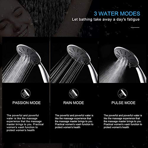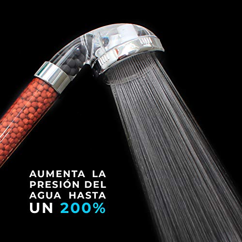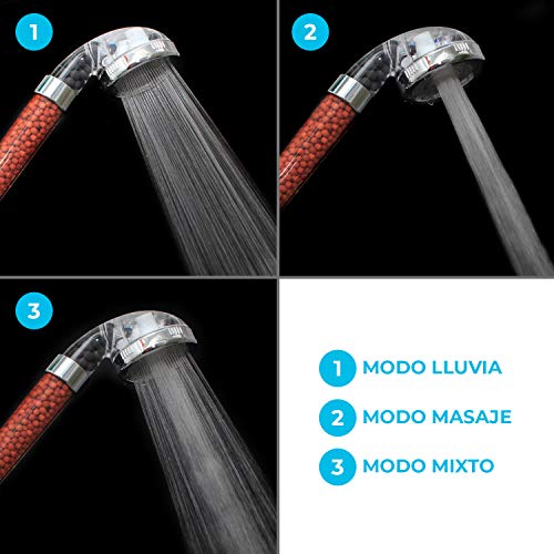 Alcachofa de Ducha Iónica | Cabezal de Ducha alta presión y bajo consumo de agua | Doble filtración con piedra mineral infrarroja e ion negativo | 3 Modos de pulverización, entre ellos Efecto Lluvia