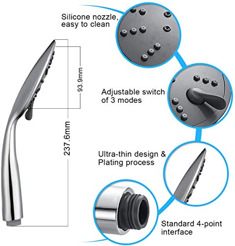 Alcachofa para ducha ultradelgada con 3 funciones WinArrow, de gran presión, apto para baja presión, áreas rurales, diseño delgado HS303