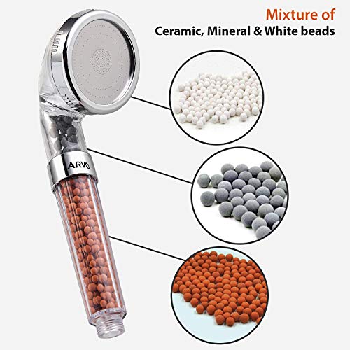ARVO Función de modo único del cabezal de ducha, filtro portátil de cabezal de ducha iónico con baja presión de agua y ahorro de agua