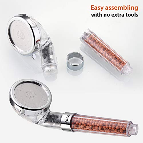 - El paquete incluye una alcachofa de ducha con perlas y junta de goma. Fácil de montar sin herramientas. NOTA: Las perlas deben reemplazarse cada seis a doce meses dependiendo de su uso. Las perlas de recambio se venden por separado.