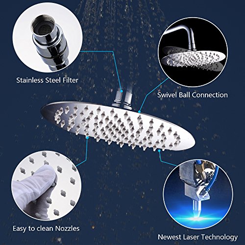 Rociador superior fino del baño de la cabeza de ducha de la lluvia del acero inoxidable de KUNGYO 304 (10 Pulgadas Ronda)