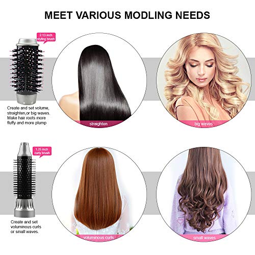 - 5. [cepillo de aire caliente incluye accesorios] - El kit de cepillo de polvo de aire caliente contiene accesorios: 1x cabezal de cepillo rizado, 1x cepillo para alisar el cabello cabeza..
