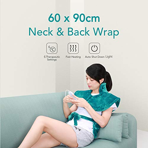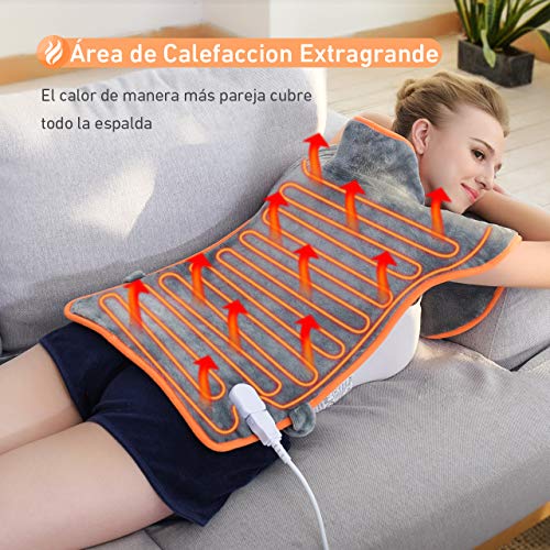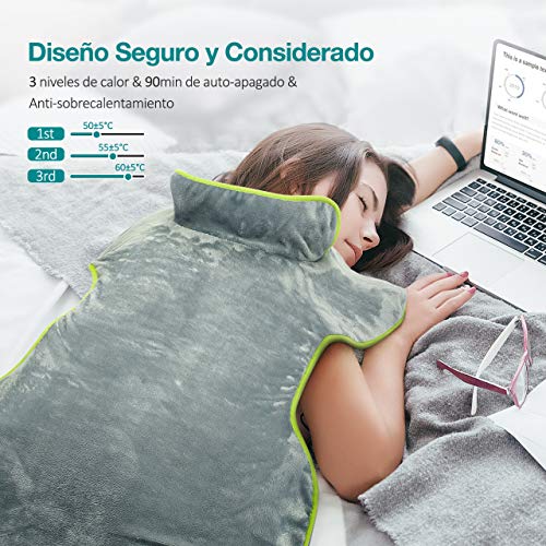 60 x 90cm Almohadilla Térmica Eléctrica para la Espalda, Hombros y Cuello Calentado con Tecnología de Calentamiento Rápido con 5 Niveles de Temperatura - Apagado Automático - Lavable a Máquina