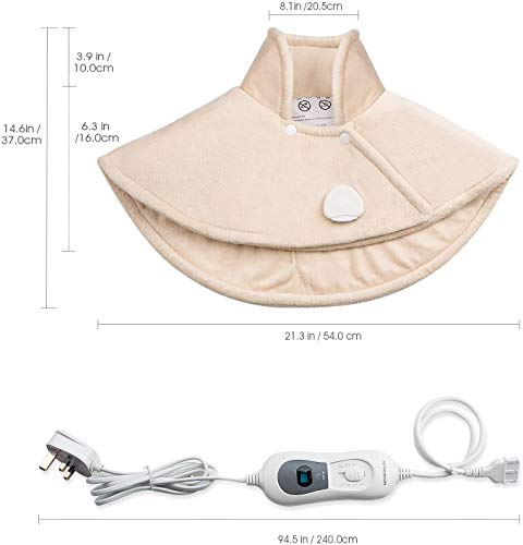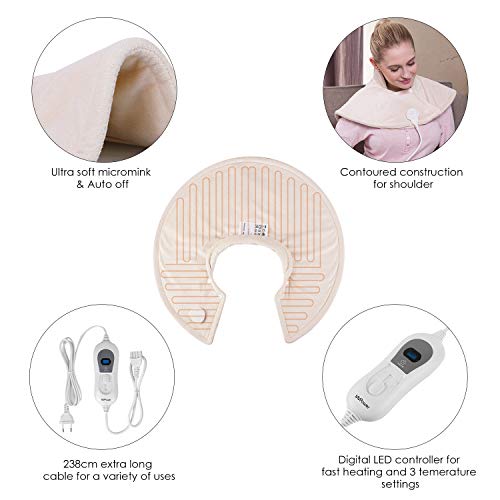 MVPower Manta Termica Cuello con 3 Ajustes de Temperatura y Apagado Automático de 90 minutos, Almohadilla Térmica para Cuello de Hombro Trasero (60 x 62 cm)