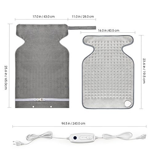 - 【Ajuste inteligente de calefacción / temporizador】 elija entre 5 niveles de calentamiento para el nivel exacto de calor que desee; 2 configuraciones de temporizador (1 o 2 horas) promueven la garantía de seguridad y la conservación de energía; El cable de alimentación largo (6 pies) le permite moverse libremente mientras se relaja con la envoltura.