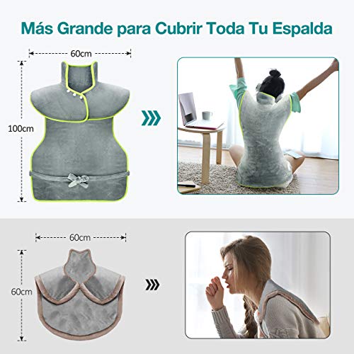 - ÁREA DE CALEFACCION EXTRAGRANDE Y OPCIÓN ÓPTIMA: La almohadilla eléctrica envolvente de 60x85cm proporciona calor penetrante en su espalda entera y los hombros, los cervicales para aliviar la fatiga y al mismo tiempo relajar los músculos tensos y promover la circulación sanguínea o simplemente para mantener el calor en los días fríos; También se puede utilizar con flexibilidad como un manta electrica en las partes corporales: la espalda, el abdomen, las piernas, la cintura y ect.